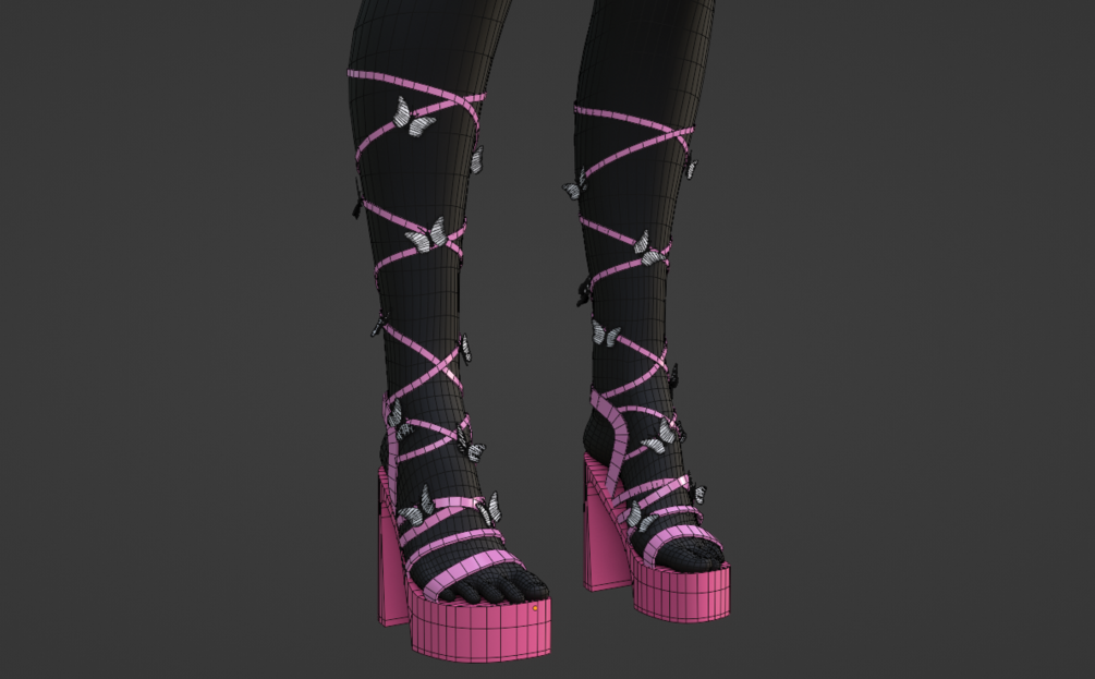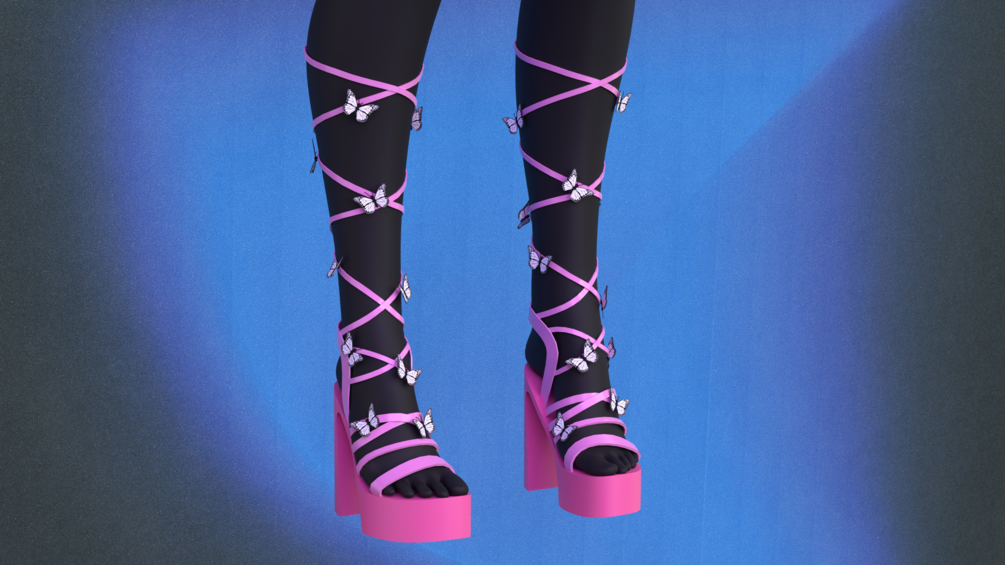 VRChat, VR Chat, VRC, Cute, , Valentines, 3D, Avatar, Model, MMD, Commercial, Clothing, Female, FBX, Download, VTuber, Shoe, Shoes, Heels, Laced, Butterfly
